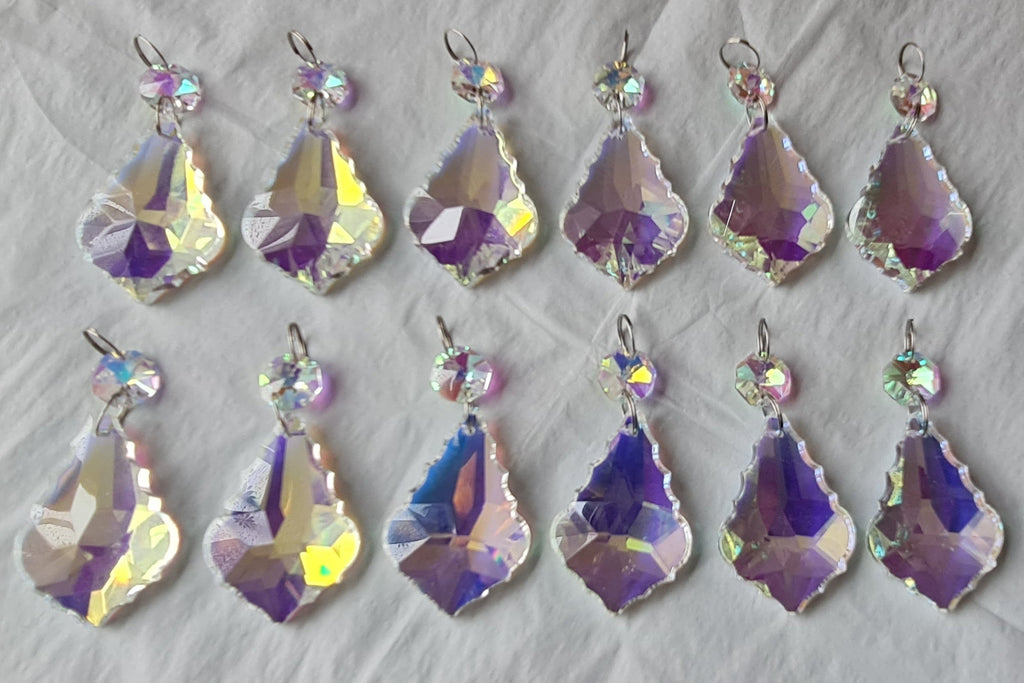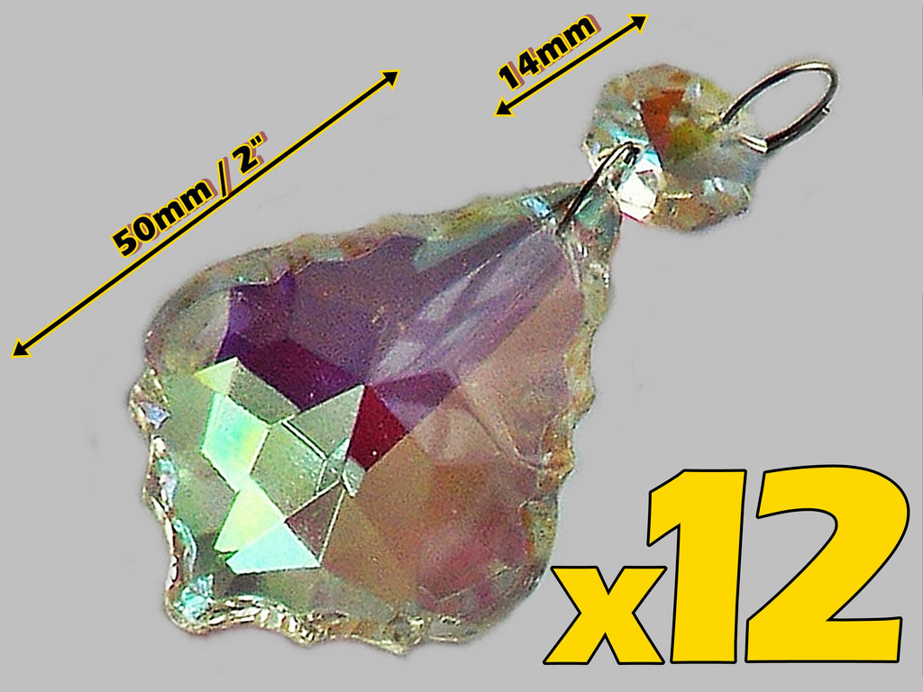 12 Aurora Borealis Leaf 50 mm 2" Chandelier Crystals Drops Beads Droplets Christmas Decorations