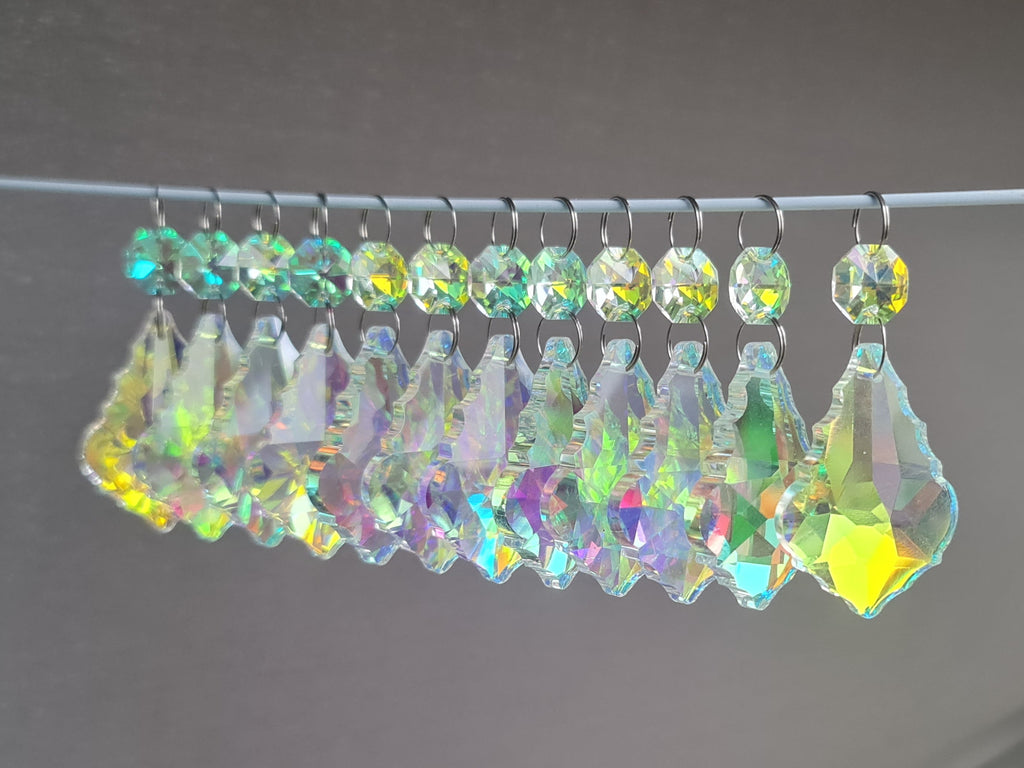 Model: 12x Aurora Borealis Leaf Facet Drop 50 mm / 2 inch