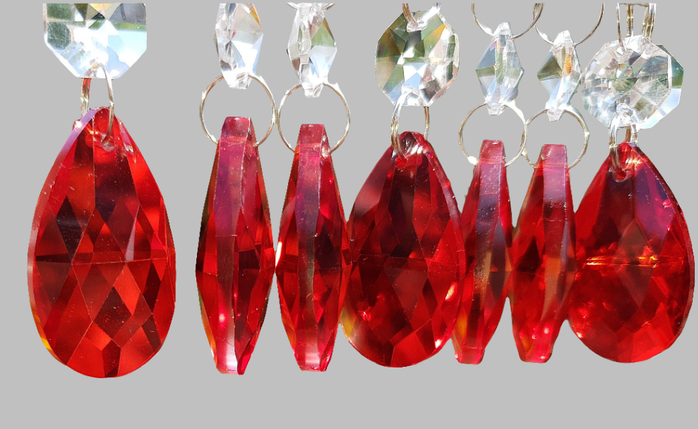 12 Red Oval 37 mm 1.5" Chandelier Crystals Drops Beads Droplets Christmas Wedding Decorations